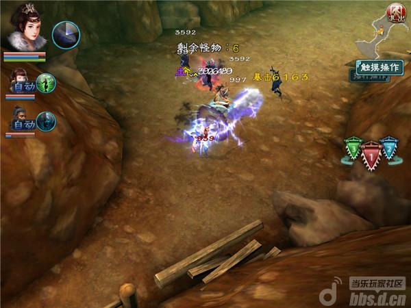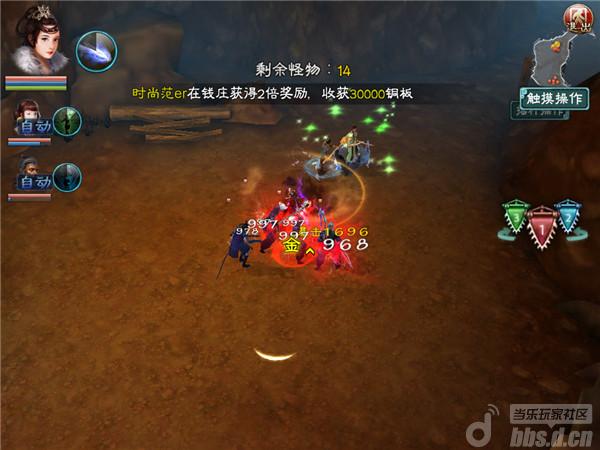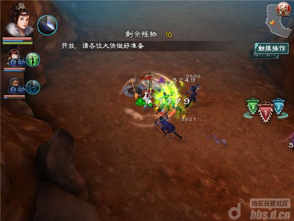 副本玩法:进入副本后,有两种模式可以选择:触摸操作和摇杆操作。两种操作各有千秋,看个人爱好了。个人认为,对于大懒虫来说吧,触摸操作更适合一些,在这个模式下,各种技能都是自动释放,更傻瓜一些。而摇杆操作更适合喜欢手动操作的朋友,根据怪物的厉害程度,需要手动去释放技能,玩起来更灵活,更有操作感。