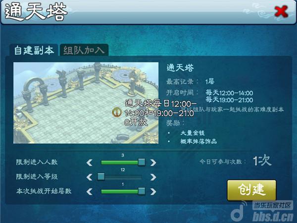 每天12:00-14:00和19:00-21:00,会开启通天塔的副本任务,在这里可以与其他玩家一起来组队挑战,获得大量金钱和靠人品爆发掉落的宝贝,奖励很丰厚的。