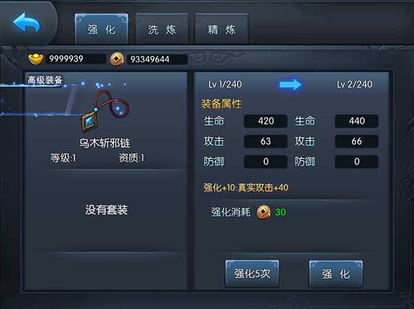 装备洗炼,则是消耗装备洗炼石,提升装备的品质。同样地,装备洗炼也能大幅度提升装备的属性,甚至是翻倍地提升。