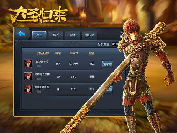 进入《大圣归来手游》之后,咱们只需要打开主界面的“其他”选项,就能在里面找到好友界面的进入按钮了。在这里,咱们可以查看到自己的好友列表,还能跟好友们开心聊天侃大山,语音和文字任意切换无压力哦!当然,处理好友申请和设置黑名单这样的功能也是必不可少的,毕竟,屏蔽讨厌的人让自己保持愉悦的游戏心情可是非常重要的事。