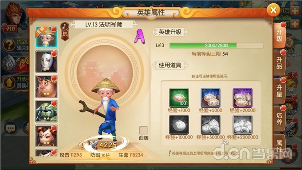 英雄有升级、升品、升星、培养等多种养成方式。依靠经验丹进行升级英雄提升综合战力的基础方式,并且英雄升级到一定阶段时还需要品质突破,激活全队百分比属性加成条目。