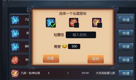 想要在游戏里组个豪华好友团——仙盟。首先要想想是自己创立一个仙盟,还是干脆加入别人的仙盟。如果不想费心思,大家可以打开仙盟的界面直接向想加入的组织提交申请,申请通过就能加入啦!如果你想自己当家,只要你有300元宝和一群志同道合的好友,那就选个漂酿或者拉轰的LOGO成为一盟之主吧!