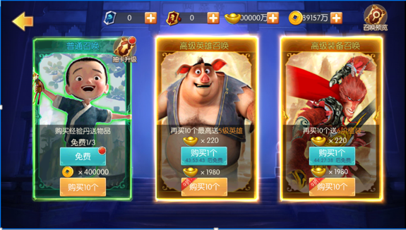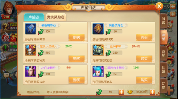 3.商店:声望商店买混天大圣,战绩商店换红孩儿,仙盟商店换地藏王,功勋商店买牛魔王,逐渐养成。