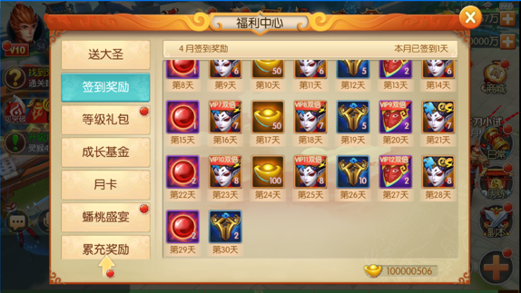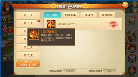 连续登入奖励:赠送SS级英雄齐天大圣。