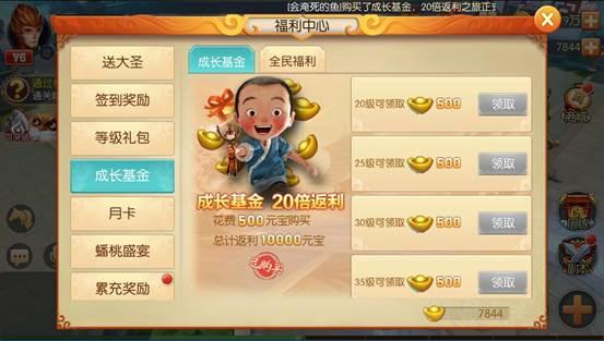 然后是成长基金,话500元宝购买,到你修炼成大圣之路时,一共可以返还10000元宝呢,不买真的是有点笨。