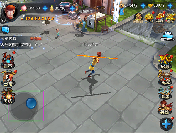 在界面中,左边靠下,猴砸看到的是副本、日常和历练三个玩法入口。