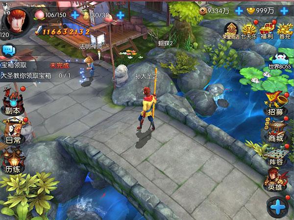 进入游戏后,随即开启《西游记之大圣归来》的新手引导,猴砸跟着引导走即可。首先进入的便是主界面。和小编一起来熟悉下。