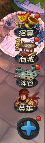 在主界面的右下角,分别是招募、商城、阵容和英雄四个按钮。