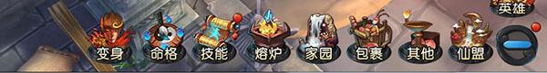 此外,在主界面有下角还有一个伸缩菜单,打开后,里面还有对应的功能按钮。如变身、命格、技能、熔炉、家园、包裹、其他、仙盟,随着角色等级的提高,会开启更多的功能玩法,开启后都可以在这个伸缩菜单中找到。