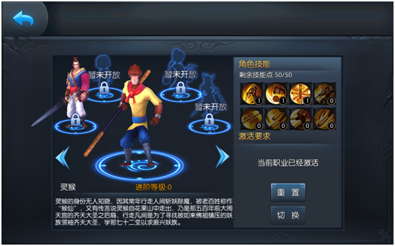 刚开始游戏时,玩家只能选择灵猴做为主角角色。