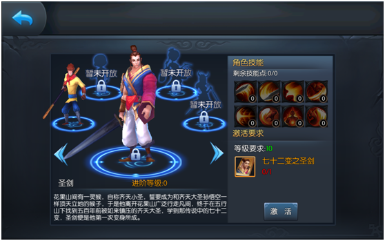 还需要玩家拥有1个“七十二变之圣剑”的物品,就可以正式启用圣剑这个角色了
