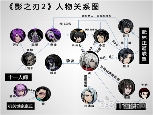 如果要用一个词来形容《影之刃2》的人物关系,那就是——混乱。主角魂与“组织”、“十一人阁”的成员都有着千丝万缕的联系。如何才能读懂他们之间的情感纠葛呢?不用担心,只需一张关系图即可!
