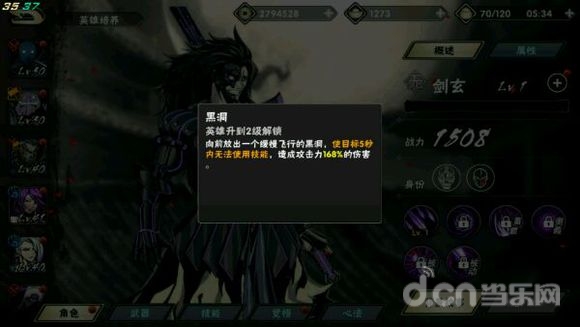 再来说说剑玄第二个招牌技能就是[黑洞]虽然这个技能的行动缓慢,但是距离很长被攻击到还会禁止使用技能5秒钟。