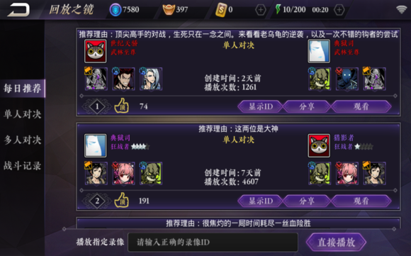 如图 点左上角的回放之境 看看高手他们是怎么搭配阵容的
