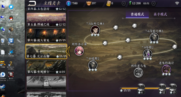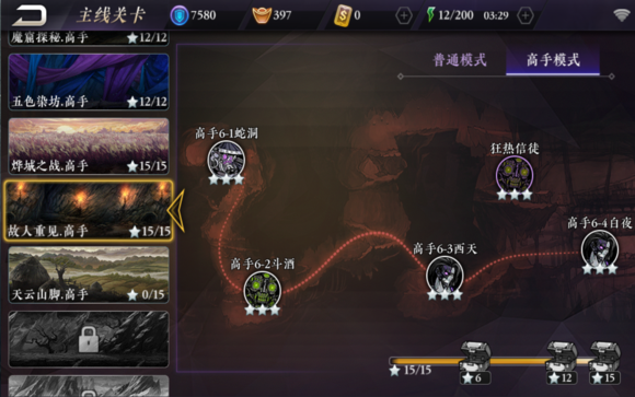 高手模式和普通模式 能3星的已经全部3星