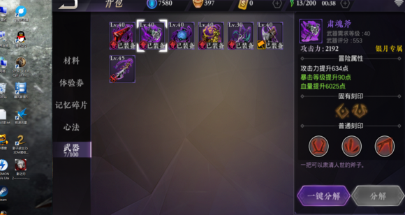 PVE 魂 银月 瞳媚 全40级专属武器 银月和瞳媚的也是40级专属武器 全是竞技币买的