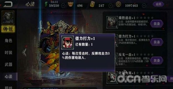 借力打力+1:每次受到攻击时,反弹攻击力3%的伤害给敌人。这个技能在PK场中可以很好的克制技能同样连击较多的英雄,所以很推荐这个心法给上官斩。