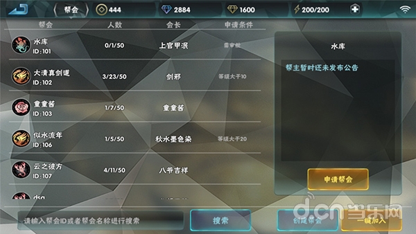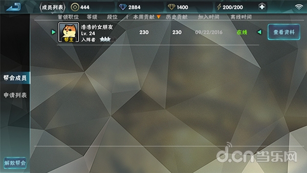 在成员界面可以看到帮众的资料,帮主和普通成员的界面是不一样的,所拥有的权利和福利也不尽相同。帮主可以看到更多的包括成员贡献度的资料,成员们也可以 随时查看自己的等级和贡献值。