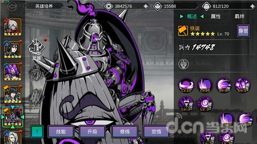 2、技能:技能连招上手比较简单,初始技能和霸体技能伤害持续时间长,7秒CD值刚好可以循环连招。可惜的是奥义技能和被动技能比较鸡肋。