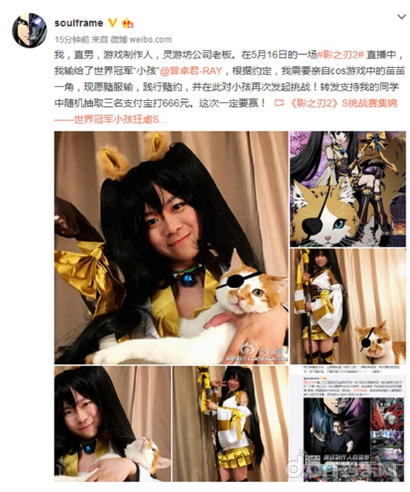 《影之刃2》制作人愿赌服输 , COS苗苗吓坏小朋友