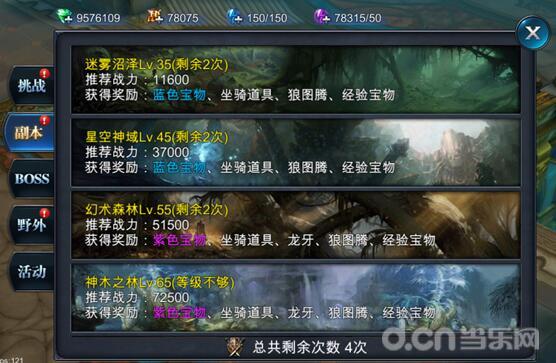 每个副本每天最多可以参加两次,每天总共可以打4次副本;就是说你可以在最高级的两个副本里选打两个