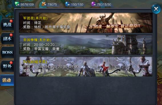 游戏目前已经开启的定时玩法有三个,分别是帝国争锋、3v3和Boss之家。