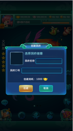 玩家可以消耗1000元宝创建[洞府](该元宝将作为洞府的初始资金),并设定名称、徽章、口号。1级洞府初始可容纳玩家5人,提升[房舍]可以提升容纳的人数上限;高级洞府将可容纳更多的玩家。(洞府最高5级,可容纳50名玩家)