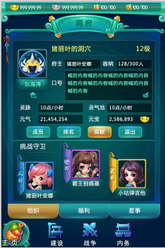5、洞府等级提升后,可容纳更多的玩家,并开放更多功能。