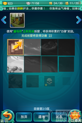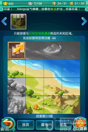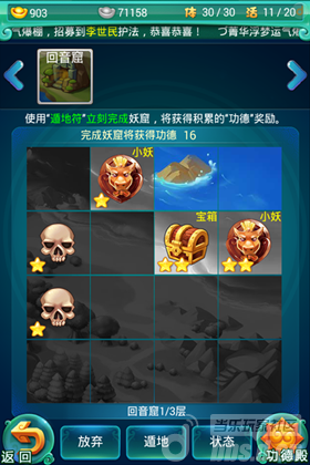 需要大量体力荡妖是进入一个专有地图,去探险,探一个黑暗区域都会消耗1体力,探出来有小怪、头目、魔王、宝箱。