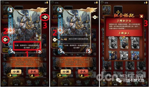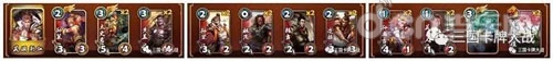 《三国卡牌大战》的牌组比较新颖,20张的牌组让你觉得意犹未尽,还想要加更多的牌在里面,但是加牌越多牌组的不稳定性也就越大,对局时间也就越长,不够刺激不够爽,20张牌组更显策略与技巧。所以,一定要专精1-2个主公的核心玩法,也就是常说的爆发点。(牌组思路举例:吴国削血,精髓在于主公孙坚技能,配合牌组内吴角色,进行削血策略)