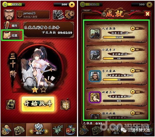 通过游戏对战来完成成就,完成成就以后会得到相应的金币,金币可以用来购买卡包,扩充卡牌。