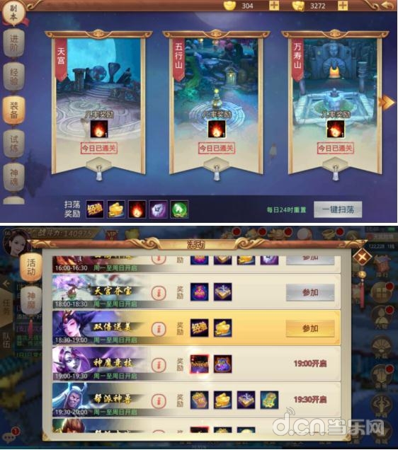 除了基本的以获取经验、装备、元宝、培养道具为目的的单人副本和多人副本以外,《戮天之剑》还有丰富多样的活动玩法。有休闲益智的答题玩法:科举答题;有惊喜满满的夺宝玩法:天宫夺宝、财神赐福;有能够获取大量经验的双倍送美和五倍挂机;更有BOSS玩法:西游神魔和帮派神兽以及热血刺激的PVP玩法:神魔竞技、帮派大战、攻城争霸、跨服天梯和跨服元宝活动。琳琅满目的玩法让玩家不论那个时间段登录游戏都能够参与其中,打怪升级之余多了许多别样的乐趣。