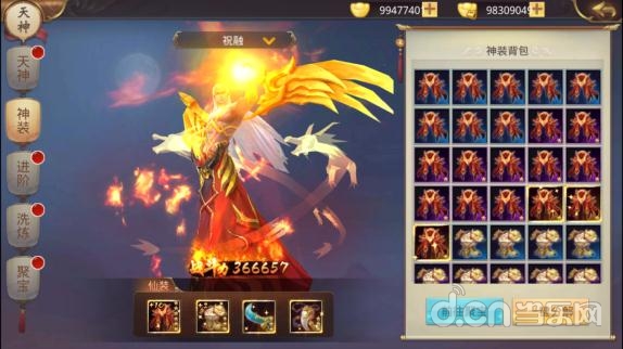 角色达到60级时,将开启【天神系统】,上仙大人可进通过天神副本、组队副本、神魔周榜等途径收集天神碎片激活天神。天神系统分有天神图鉴、神装、进阶、洗炼、聚宝五个子系统,除了聚宝系统,其余均可以对天神进行激活与培养。在激活后,可带着天神出战任务副本。