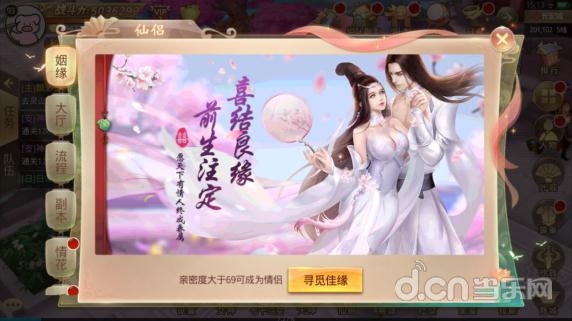 60级开启仙侣系统,系统开启后,可与异性角色建立亲密度,亲密度达到69时,可成为情侣,一起刷情侣副本。另外,情花和婚戒子系统为战力加成系统,这是一个能够满世界撒狗粮,还有高战加成的系统。