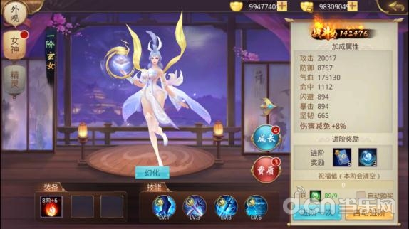 83级开放女神外观系统,目前该系统开到四阶,分别是玄女、雨师妾、百花、羲和;在女神系统下面还有精灵子系统,同样也是开到四阶。相对于前期开启外观系统来说,女神系统能为角色带来较大的战力加成。