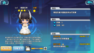 绝望女神的特性是:降低伤害并提高各种治疗效果。它的技能分别为:【女神护佑】和【防护力场】。