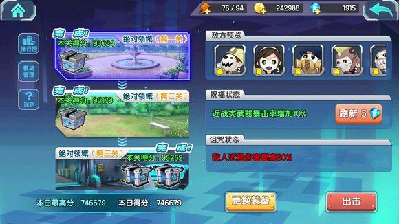 绝对领域:通过关卡后可在宝箱中获得模块或模块强化材料,根据排行榜可获得少量兑换模块用的“高能晶核”和模块强化材料。(欧洲人甚至能在宝箱中直接开出S级的)