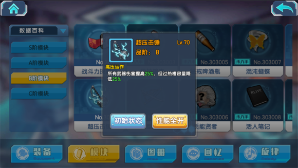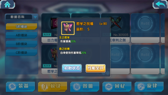 所以前期凑合用,尽早换出A级和S级模块是比较好的策略。