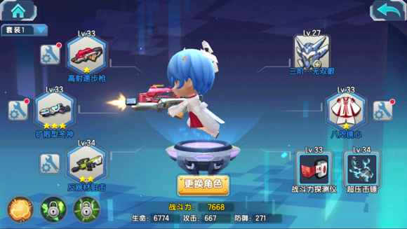 首充送的战斗力探测仪+超压击锤,就是前期刷图理想的模块了。