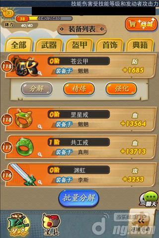 装备洗练是新版本推出的另外一种功能和玩法。分解功能能够使装备分解出炼化所需的材料;炼化升阶,可以进一步提升装备的属性。
