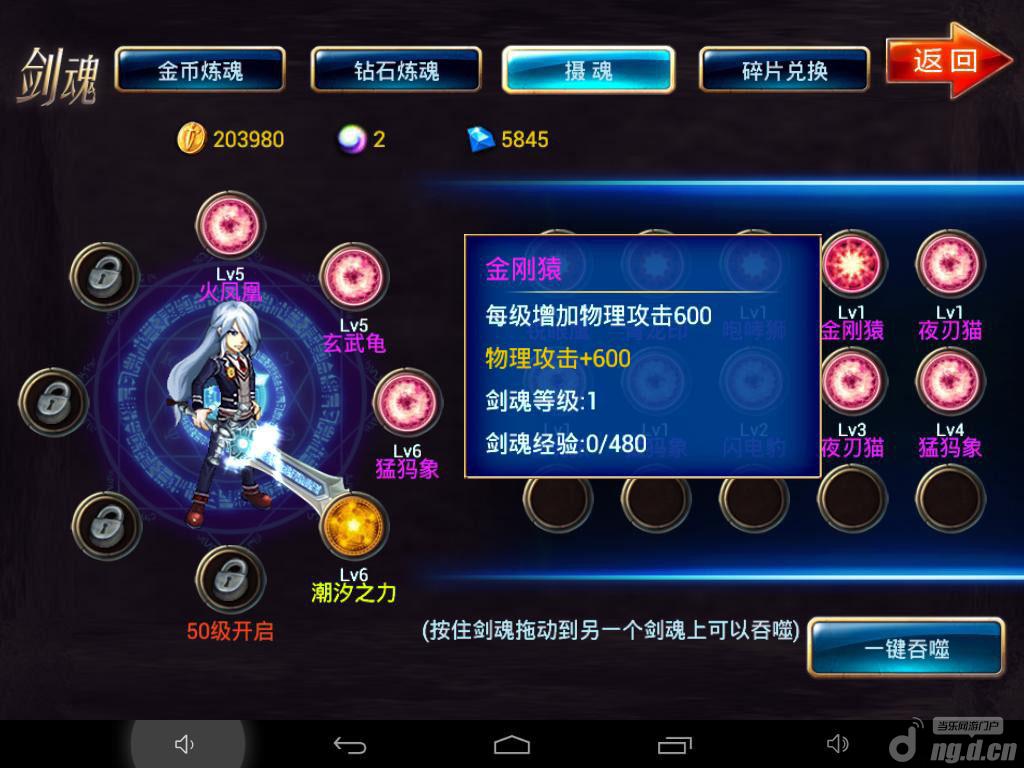 《剑魂之刃》是一款极具探索性的日韩式闯关动作类格斗手游。主打手势操控模式,在战斗连击自由度方面给予加深和创新,并同时融入极其华丽的技能特效,不失为2014年手机动作游戏的盖世佳作。游戏画面采用日韩式卡通风格,整体偏凝重但又不失清新感,尤其是游戏助手形象一改传统“简单”的风格,采用了一只非常可爱的萌系小萝莉,非常符合广大宅男们的胃口。《剑魂之刃》在玩法上不仅拥有包含升级、培养、强化、转职等一系列成长元素,更将即时街机格斗的快感与PK战的激情予以浓墨展现,保证给予你最酣畅淋漓的游戏乐趣与享受。[详情]