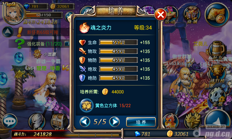 培养:必须前四个培养栏是满的,如果战斗力还是不够,那只能多刷点立方体,把第五栏填一半。