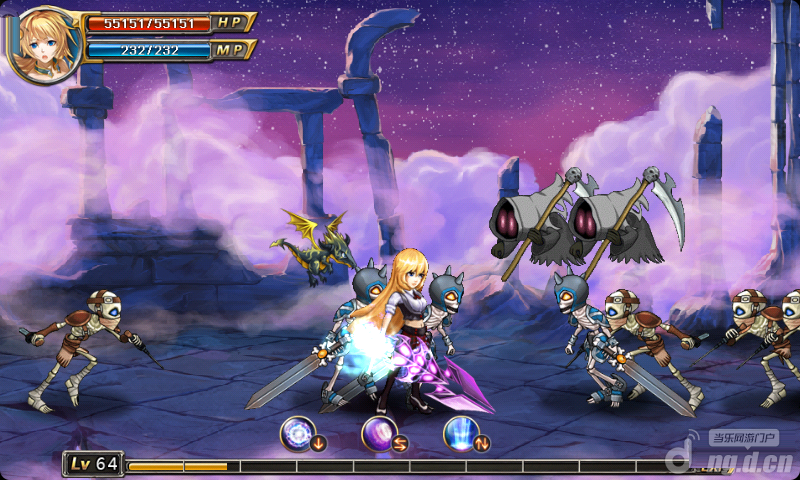 打法:都是物攻选手,可以先开启护罩,再使用吸星把怪物吸过来,再用利用破芒阵攻击,近身普攻。技能要速度放出来哦,因为骷髅贼的飞刃很快攻过来,自己技能放快点也就没什么威胁。