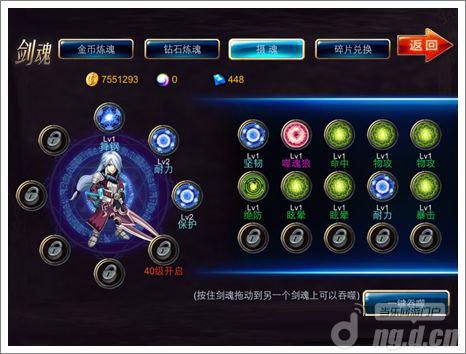 剑魂能够在快速堆起我们所想要的属性,前期开放两个剑魂空槽,优先推荐: