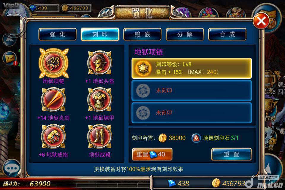 大家可以看到,装备的刻印继承了,也就是说刻印不是针对装备,而是装备部位,只要你刻印了一次,就和你这个装备部位永久绑定了,当然你可以重置成其他属性。