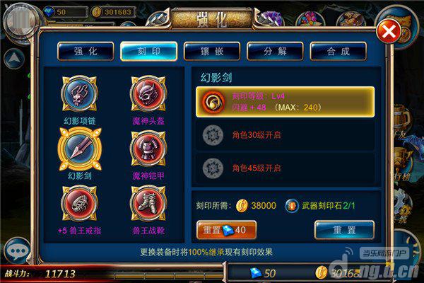 一、装备刻印有了很大的变化,刻印条数从1条增加到3条,第2条第3条分别在30/45级开启
