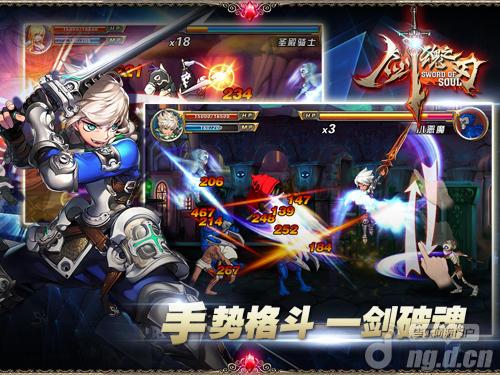 《剑魂之刃》是一款极具探索性的日韩式闯关动作类格斗手游。主打手势操控模式,在战斗连击自由度方面给予加深和创新,并同时融入极其华丽的技能特效,不失为2014年手机动作游戏的盖世佳作。游戏画面采用日韩式卡通风格,整体偏凝重但又不失清新感,尤其是游戏助手形象一改传统“简单”的风格,采用了一只非常可爱的萌系小萝莉,非常符合广大宅男们的胃口。《剑魂之刃》在玩法上不仅拥有包含升级、培养、强化、转职等一系列成长元素,更将即时街机格斗的快感与PK战的激情予以浓墨展现,保证给予你最酣畅淋漓的游戏乐趣与享受。[详情]