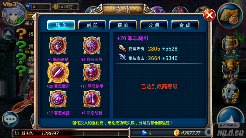 强化装备要平衡,不要一味的强化武器,前中期防具建议统一+5,武器加10