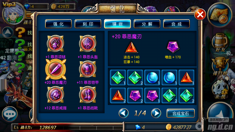 特别提醒:不要迷恋紫装,20级蓝装比10级紫装好很多。所以有了新装备,属性好的就用吧。