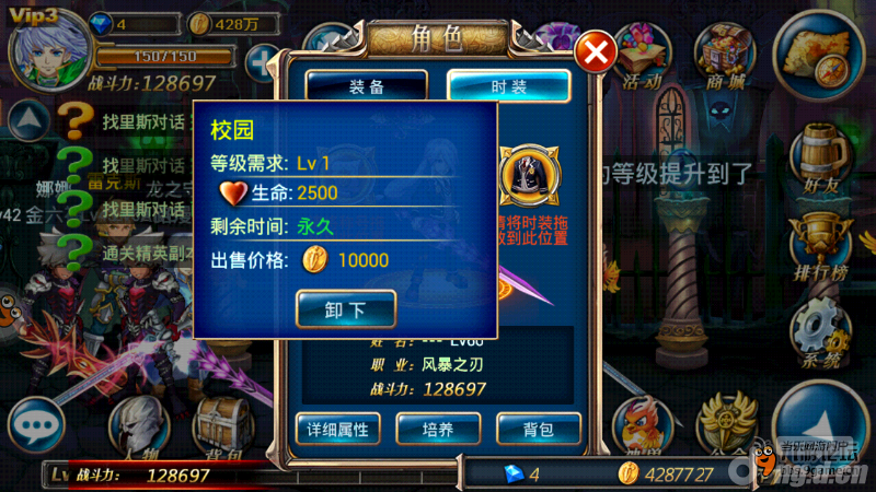 6.经验副本;全通关有大量经验,死了也有不过少很多,在规定时间内通关有额外奖励,每天有2次挑战的机会,第一次是免费的,第二次消耗50点体力